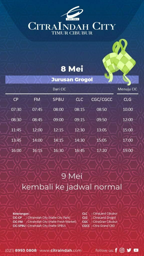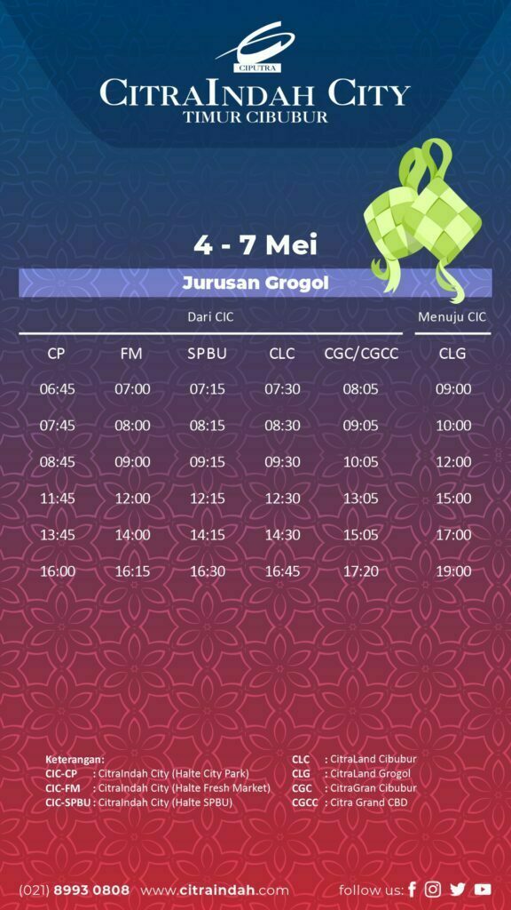 Selama bulan Ramadhan, jadwal feeder bus disesuaikan. Jadwal dapat diunduh di bawah ini.